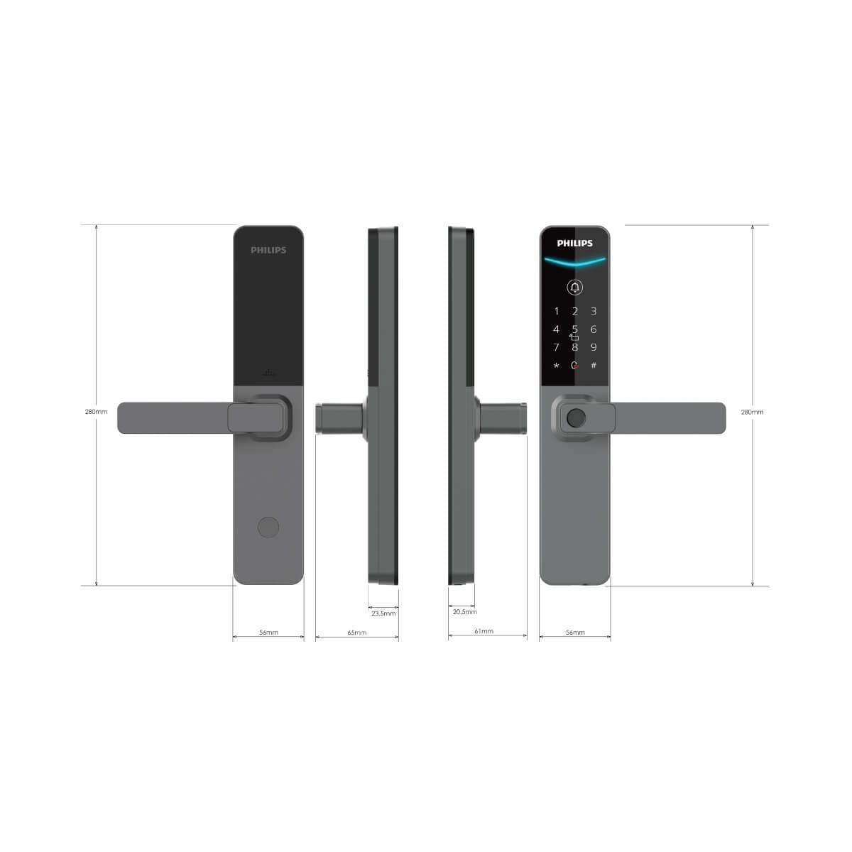 The Philips DDL615-5HBS combines compact design and secure performance in a sleek 56mm-wide panel that fits a variety of doors. With quick setup via the Home Access App, it offers both convenience and control.